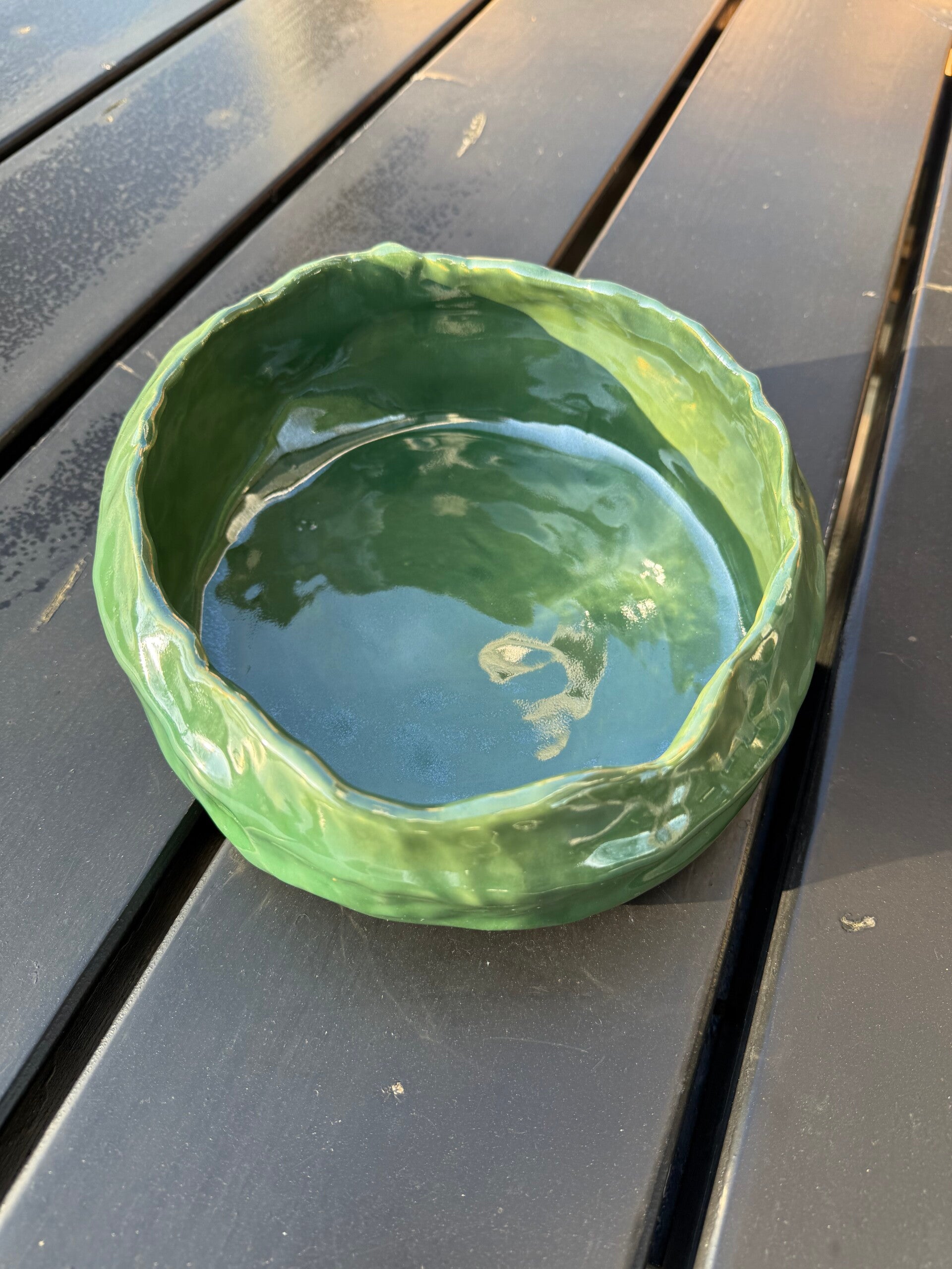 Speelse schaal | kom | avocado groen | aardewerk | diameter 22 cm | hoogte 9 cm | kan ook opgehaald worden