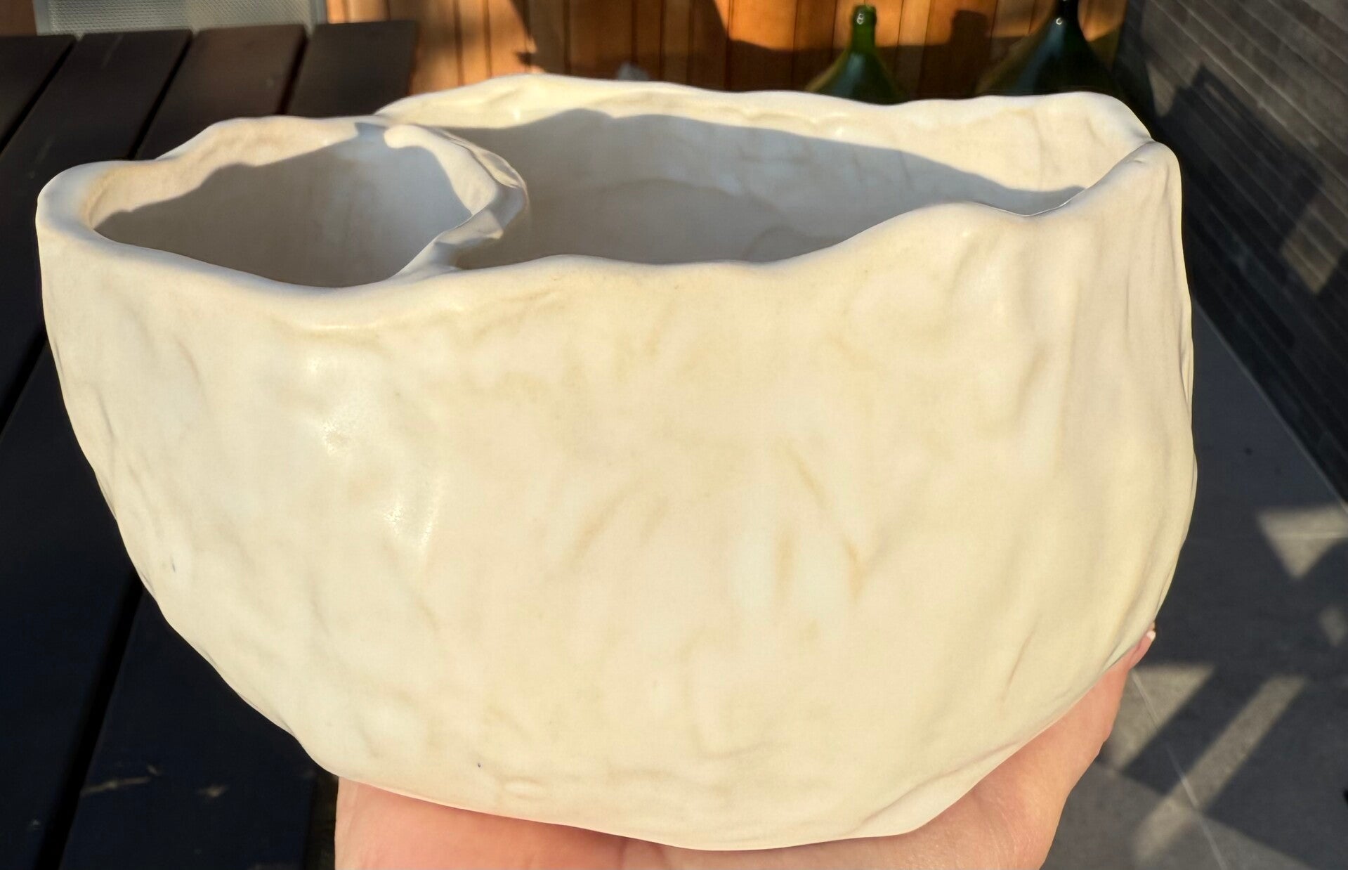 Speelse schaal met vakverdeling | roomwit mat | aardewerk | diameter 20 cm | hoogte 8 cm | kan opgehaald worden