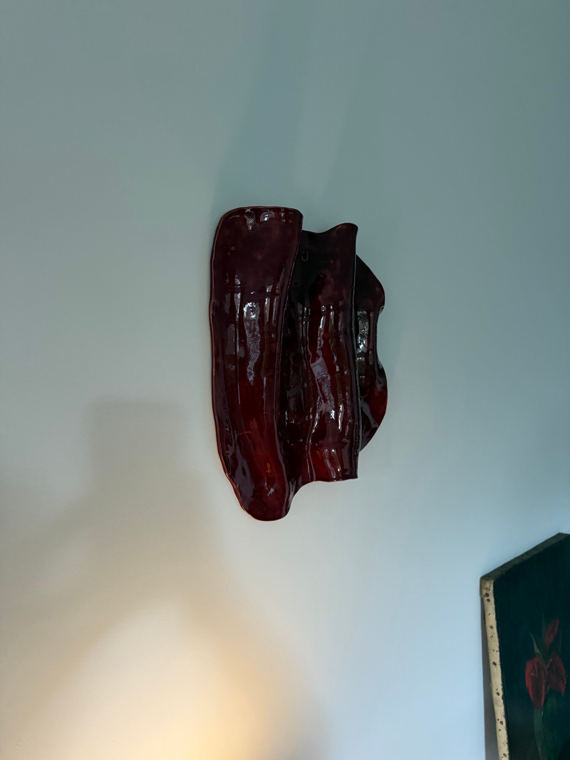 Decoratieve wanddecoratie | kersenrood | 33 x 27 cm | aardewerk