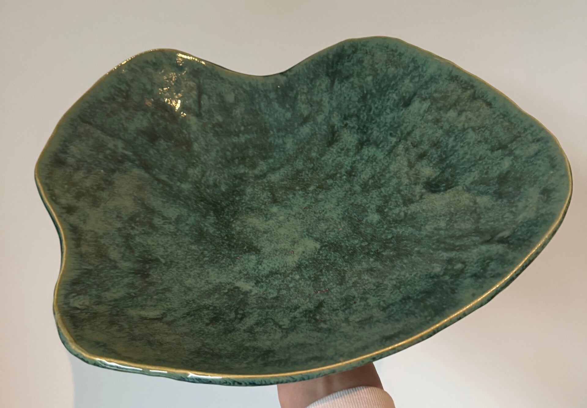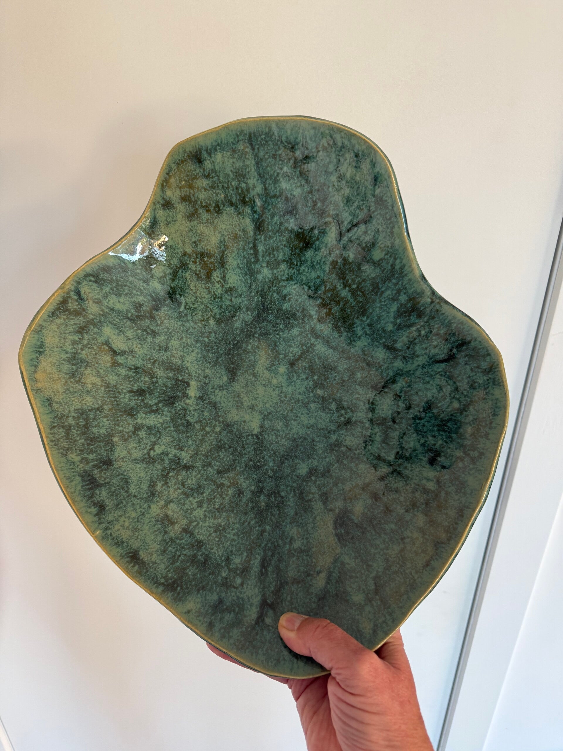 Speelse schaal | zeegroen | aardewerk | lengte 36 cm | hoogte 8 cm